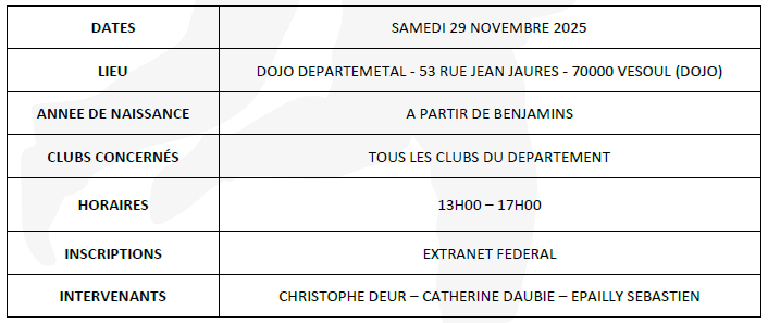 29/11/25 2ème Stage d'arbitrage et commissaire sportif